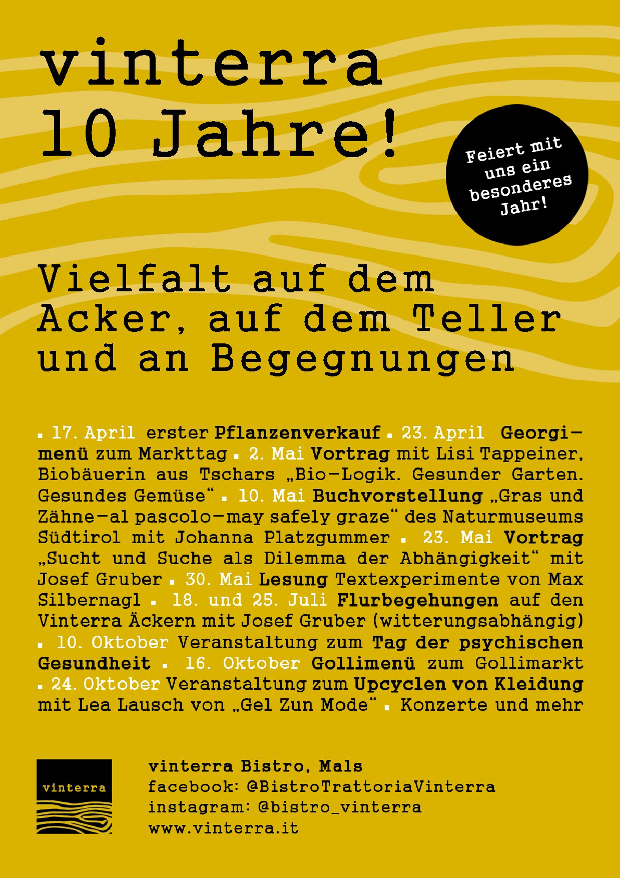Informationen erhältst du gern im Bistro vinterra, per e-mail info@vinterra.it oder unter der Telefonnummer +39 345 7222 384